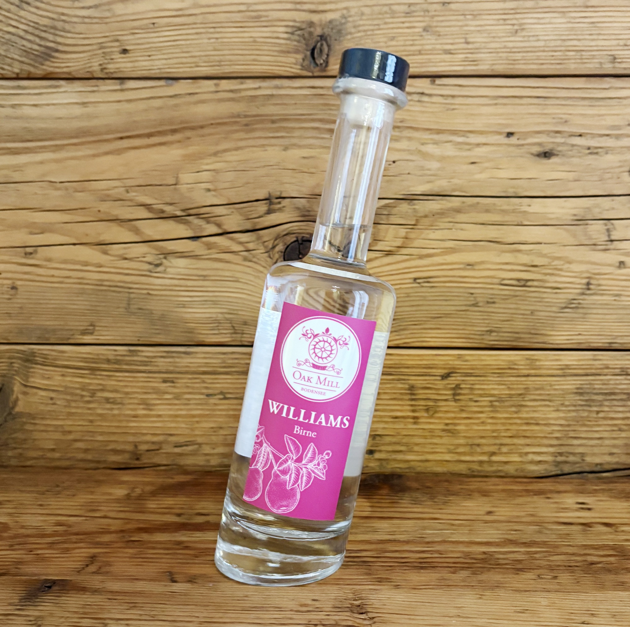 Der Eyecatcher in der schiefen Flasche (0,35 l). Der Oakmill-Williams besticht in der Nase mit einer vollfruchtig intesiven Birnennote. Am Gaumen entfaltet sich der erfrischende und fruchtbetiónte Charakter mit einer leichten Würze, die an Muskatnuss erinnert. Mild im Abgang.